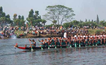 礼乐的龙舟比赛对于礼乐人来说是非常重要的事,竞赛当天是最大的节日。在比赛前,各路龙舟天天集中桡手(又叫扒丁),足足训练了一个月(这又叫作套桡),每一个村坊时时传出喧闹的锣鼓声,炮竹声声响,那种气氛,比过年还要热烈。每一只龙舟都募集了许多捐款,少的几元,多的几十万,人人都同样慷慨。听说,本次龙舟赛扒得第一名的,每一名桡手可以获得多于一万元的奖金。哇!我也想去扒呀!可无奈……